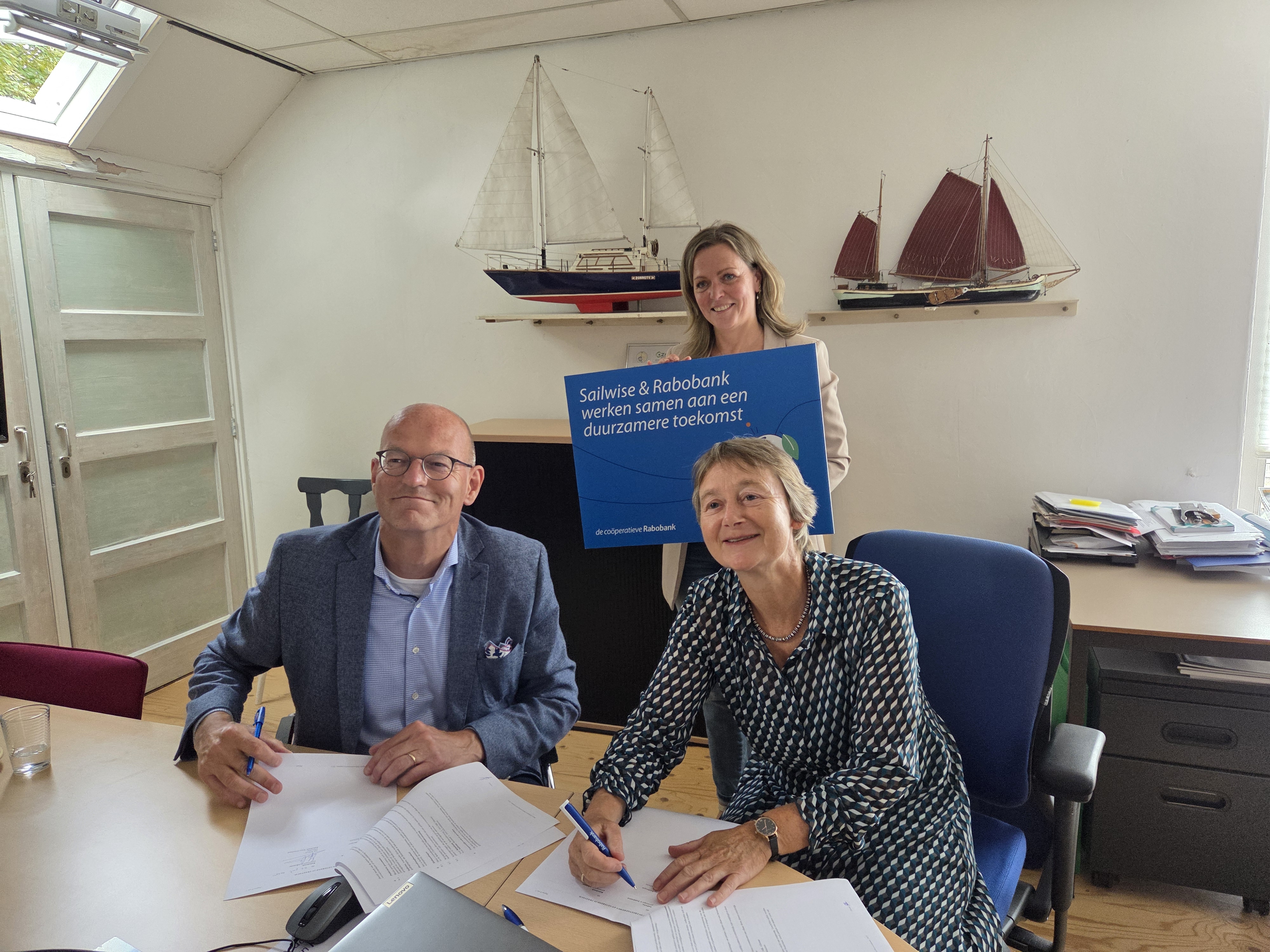 Jan Klaver, directeur Rabobank West-Friesland, en Renske Rietbergen, directeur van SailWise, tekenden hiervoor de overeenkomst.