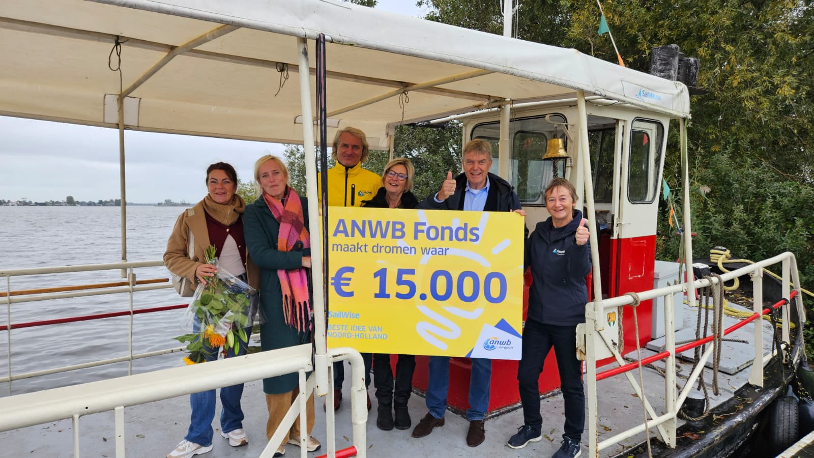 SailWise is uitgeroepen tot winnaar van de provincie Noord-Holland in de landelijke actie van het ANWB Fonds! Het initiatief dat zich inzet voor watersport voor mensen met beperking, ontvangt een bijdrage van € 15.000 voor de voor verduurzaming van de dieselmotor van de veerpont. De feestelijke uitreiking vond plaats in Loosdrecht, in aanwezigheid van Directeur Sailwise Renske Rietbergen en ANWB Fonds Adviescommissielid Ron Heeren en wethouder gemeente Wijdemeren Wilna Wind.