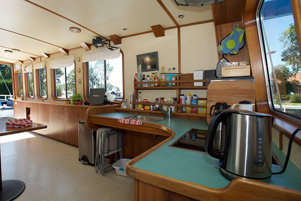 De Beatrix heeft een gezellige en riante binnenruimte met keuken en sanitair. Aan boord kan je dus ook samen genieten van een heerlijke, zelfbereide maaltijd. Ook is het mogelijk om verzorging onderweg te krijgen. En zeker niet onbelangrijk: of je nu wel of niet een beperking hebt, de bemanning haalt alles uit de kast om iedereen mee te laten doen!