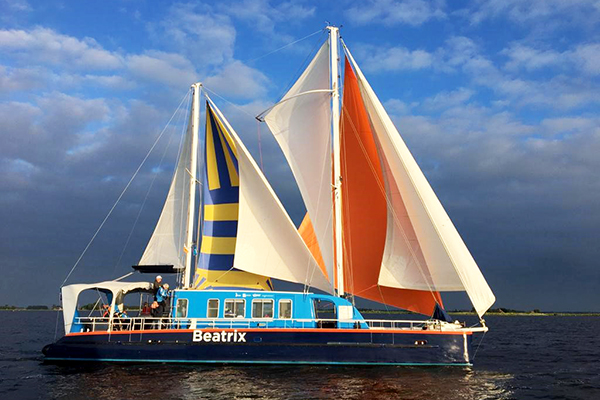 Ga je mee zeilen op de catamaran Beatrix, dan beleef je een onvergetelijke zeiltocht. De Beatrix is een uniek schip en geschikt voor het échte zeilen.Scherp aan de wind, stabiel en supersnel over het water, het kan allemaal op deze 18 meter lange zeilcatamaran. Maak je maar klaar voor een geweldige zeiluitdaging!